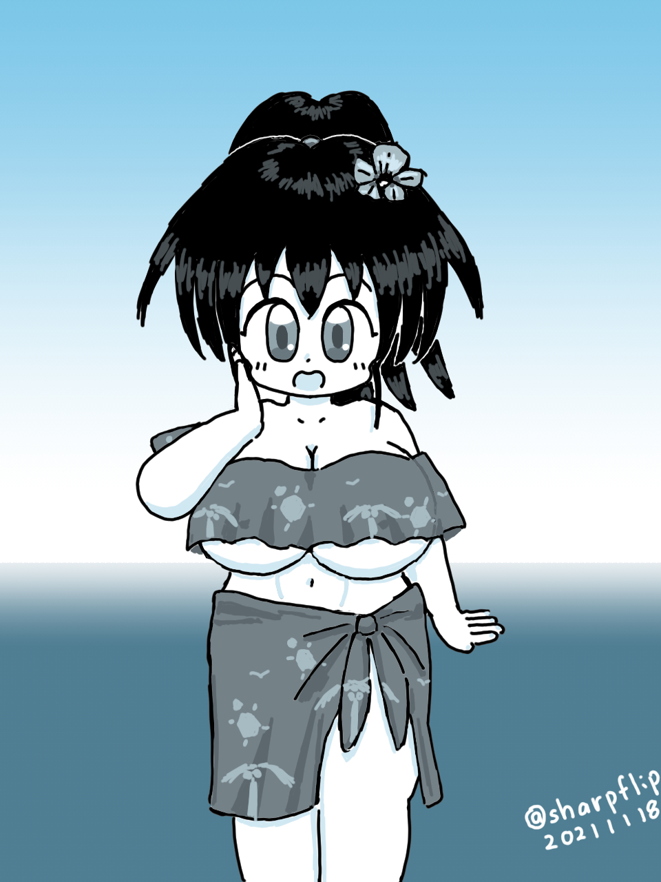 パレオ着用のすかこ。