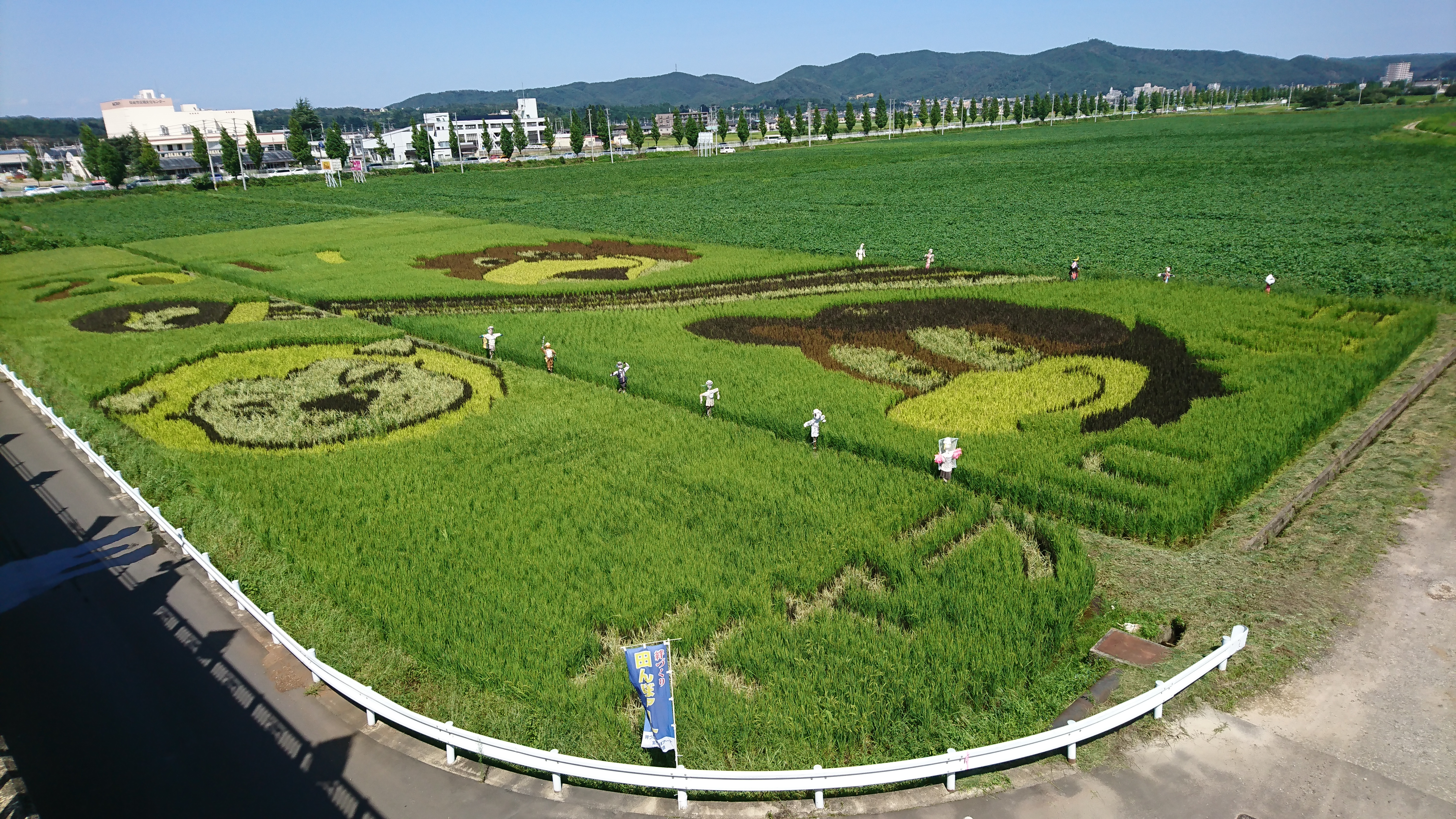 徒歩で移動。途中に田んぼアートをしてるのを見つけました。