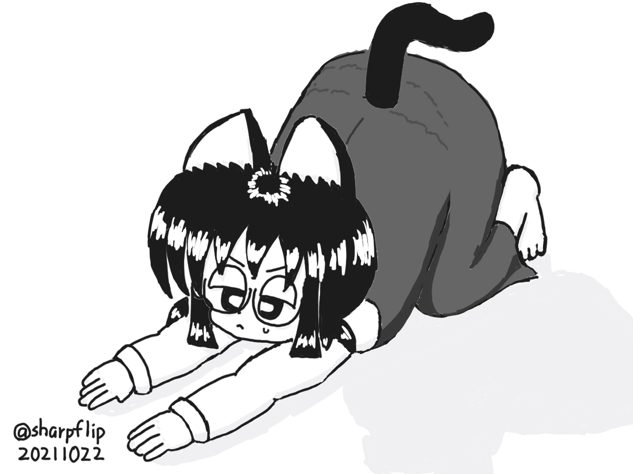 ケモミミのばなな。ネコのポーズ。色相変えてもいまいちだったので黒のまま。