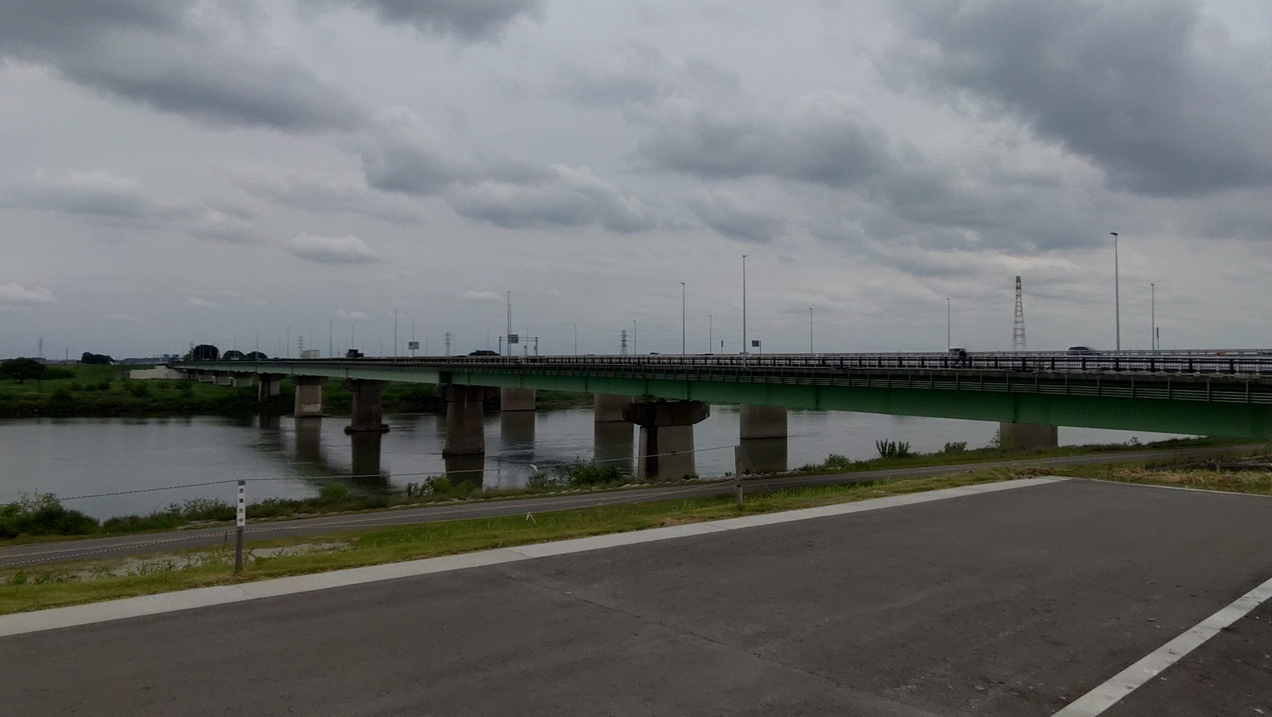 そんなことをしながら土手を上がっていくうちに橋と歩道が見えました。