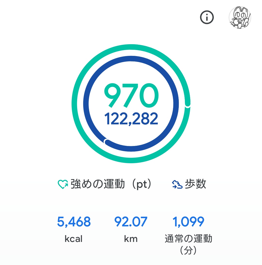 歩数は122200歩。今回は0時から始めたので表示通りの歩数ですね。