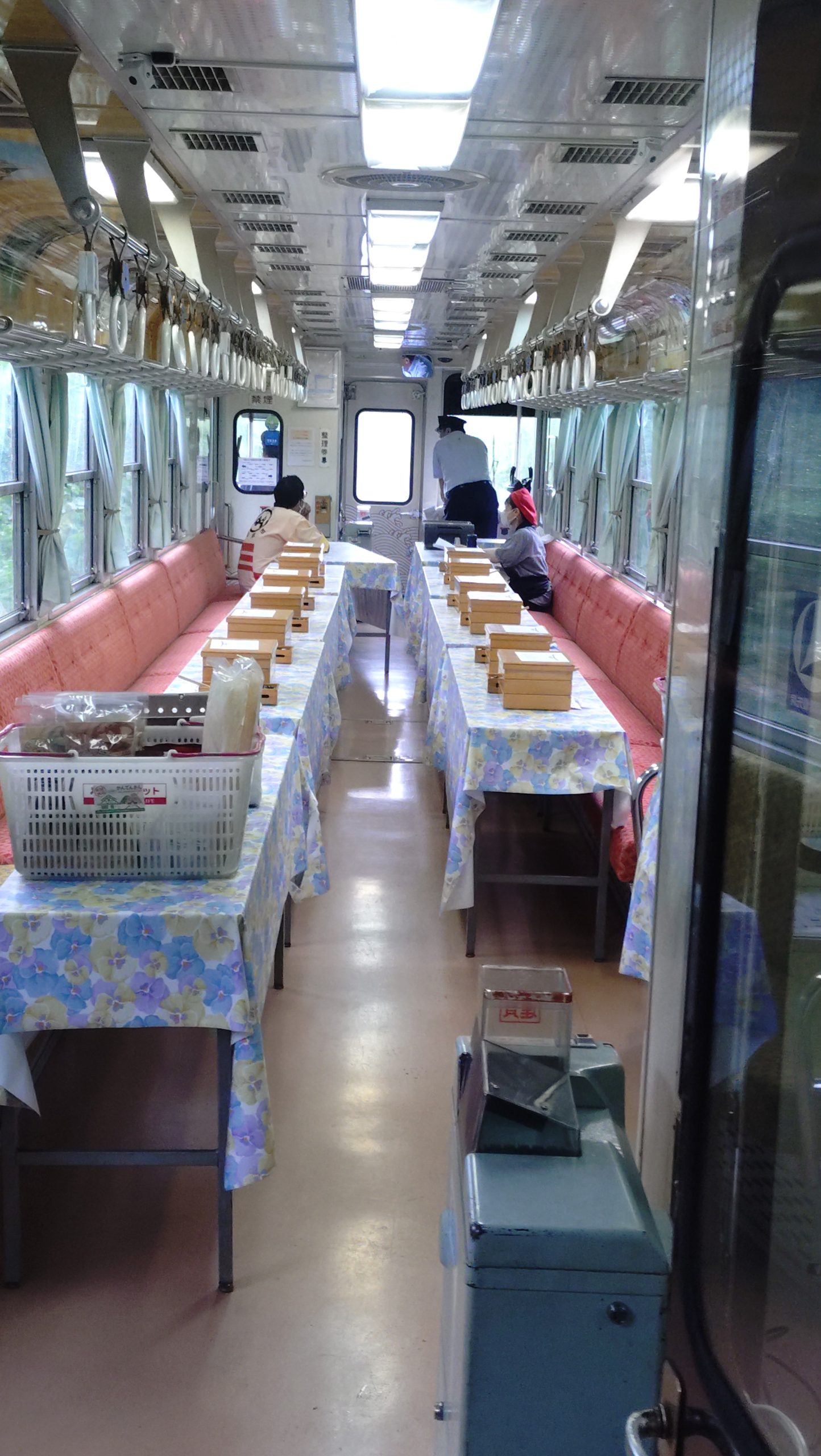 乗った列車は「寒天列車」。乗った車内で寒天が食べられるようだが、逆方向、恵那から乗る方向け。