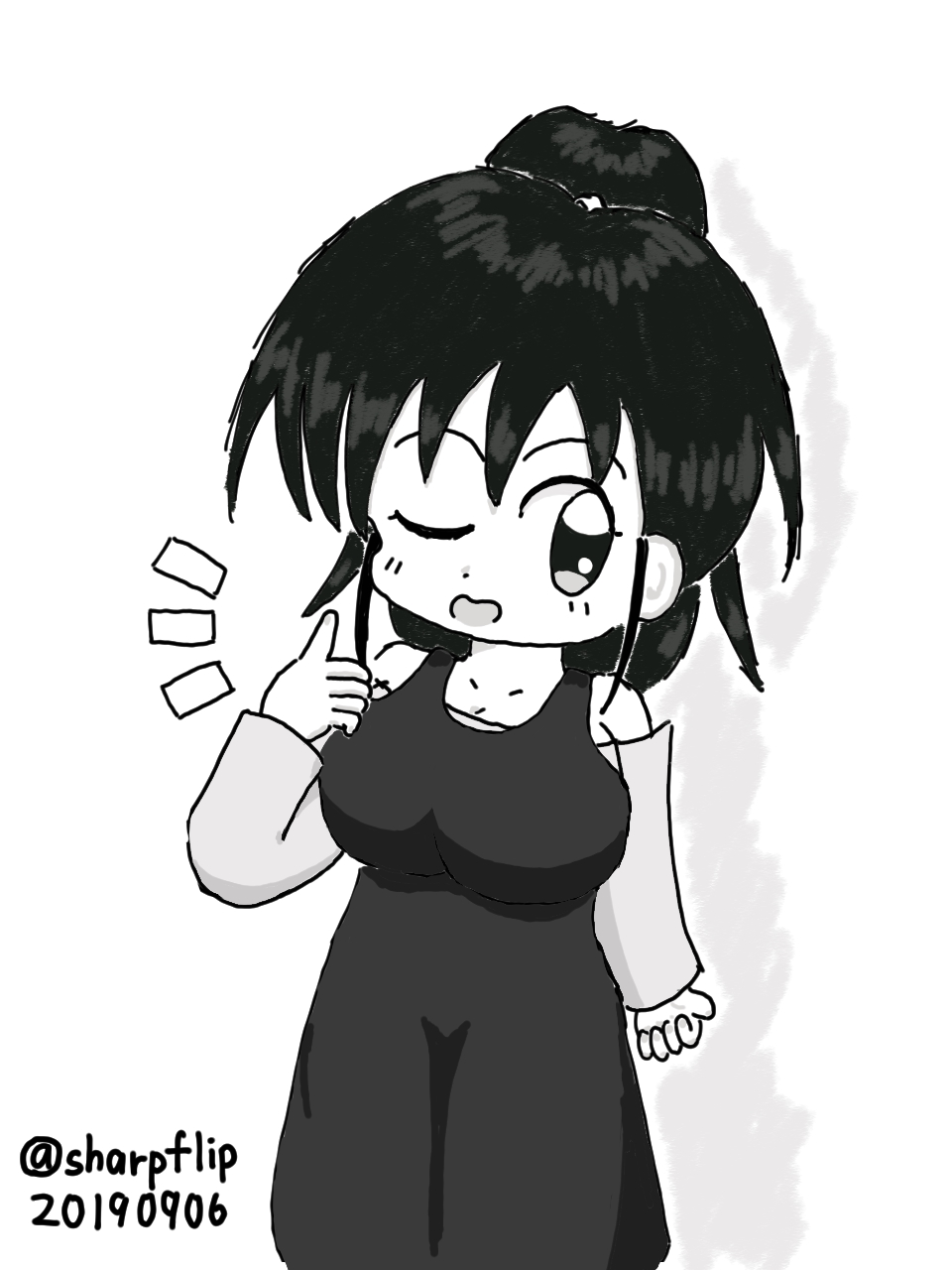 喜びの意を。サムズアップ。