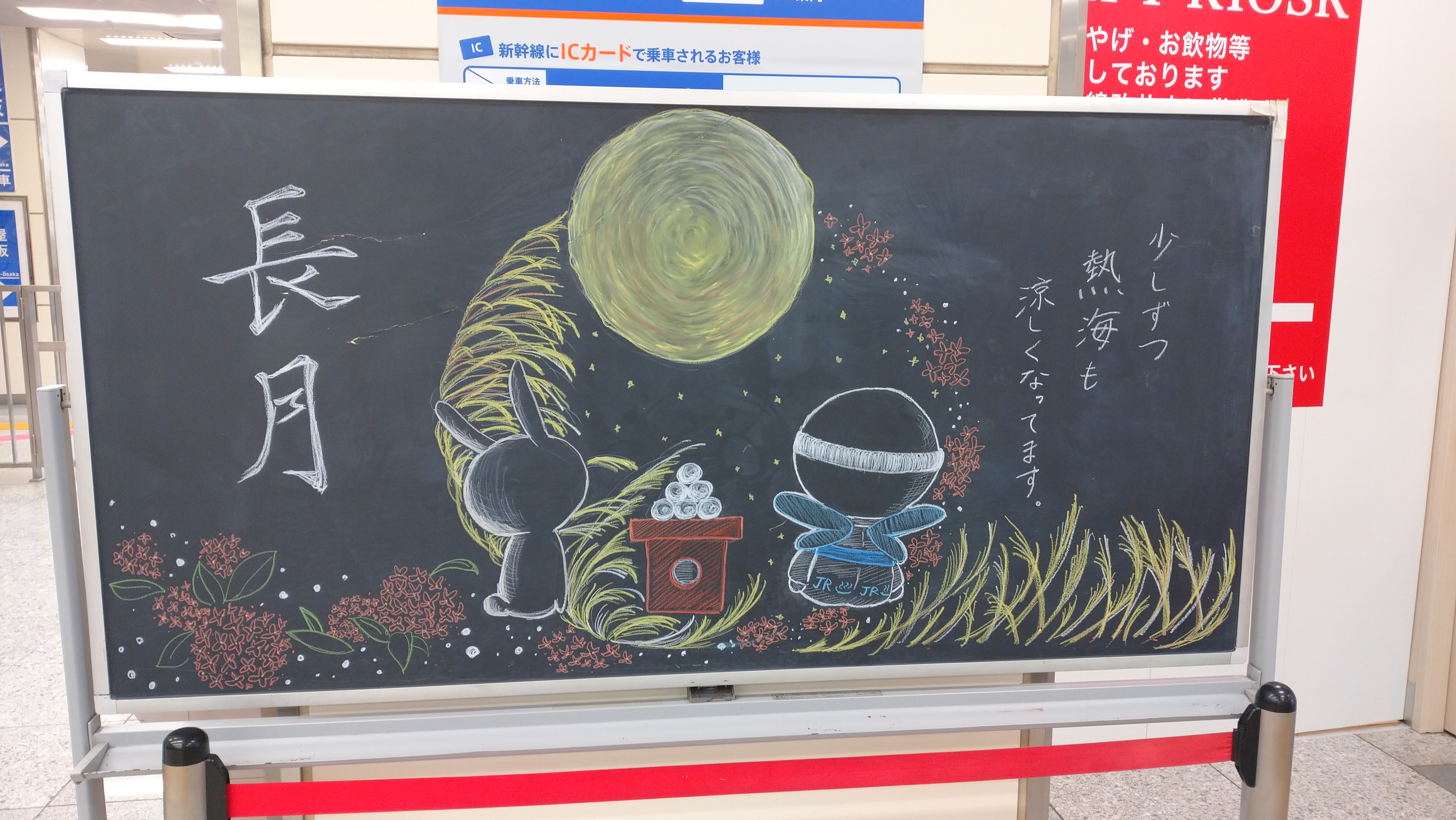 新幹線口には黒板アート