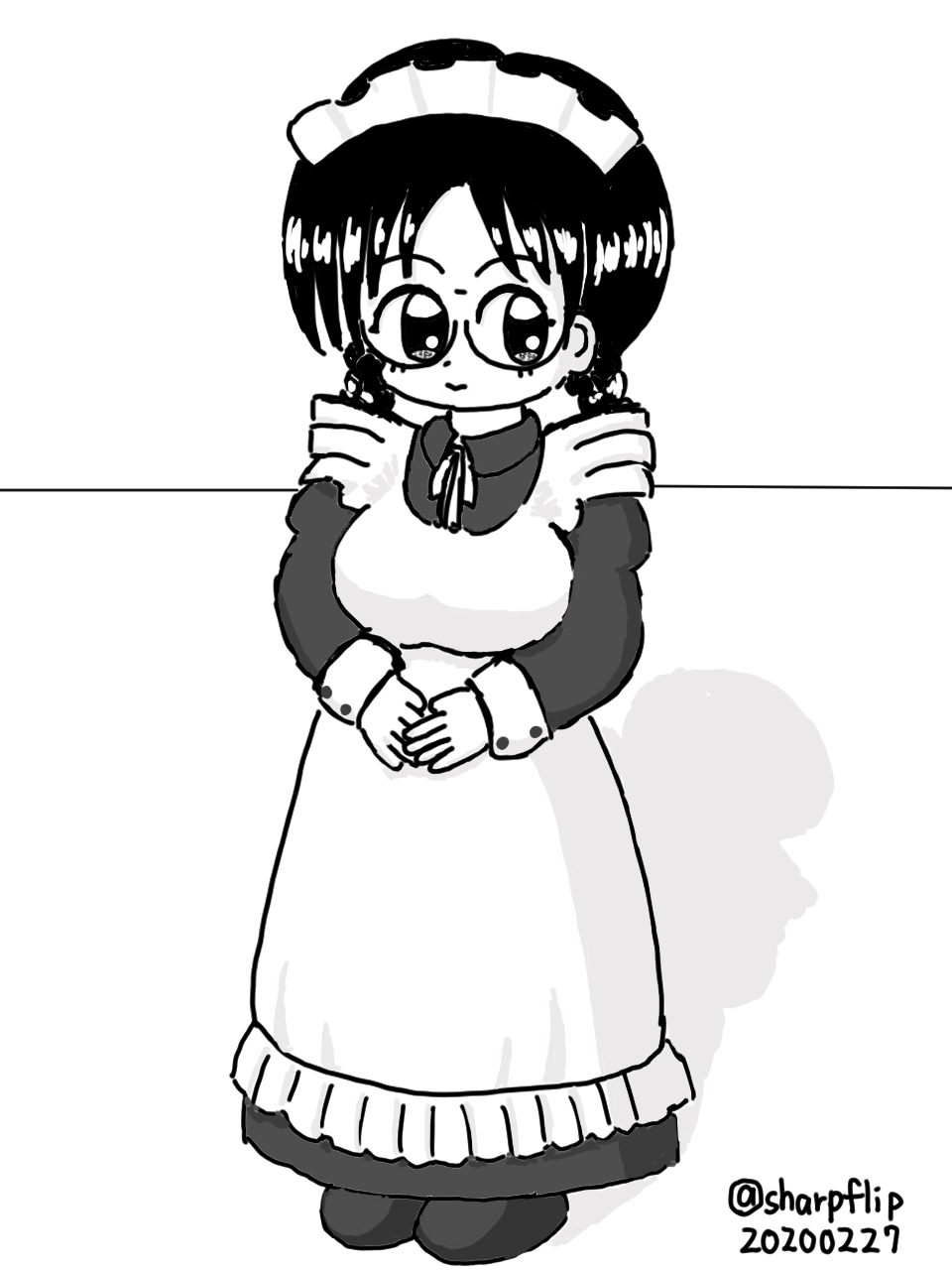 時事なネタは思い浮かばず、三つ編み眼鏡のメイドさん。