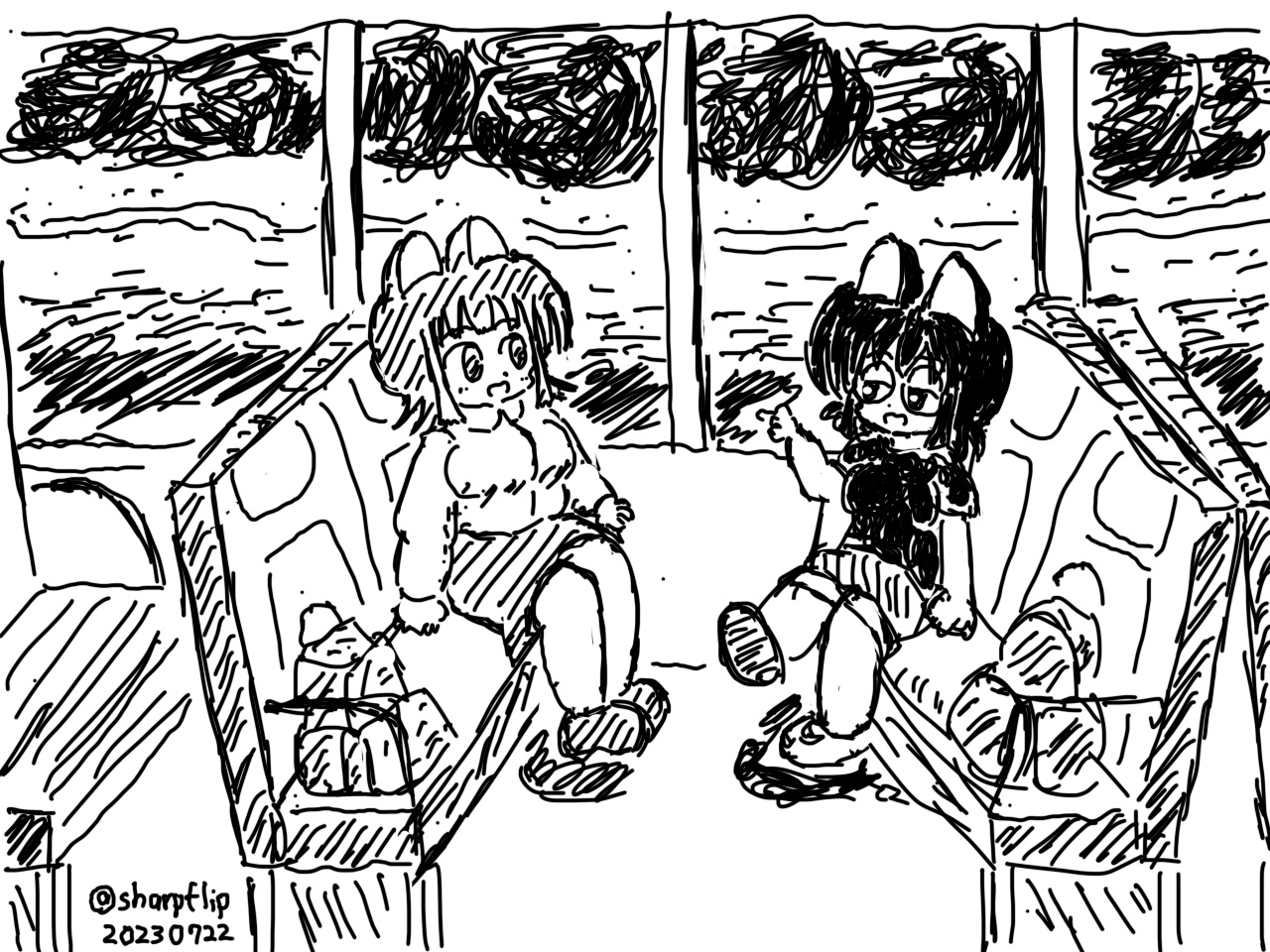 これが、最後に乗った東海道線のグリーン車にて描いてたもの。